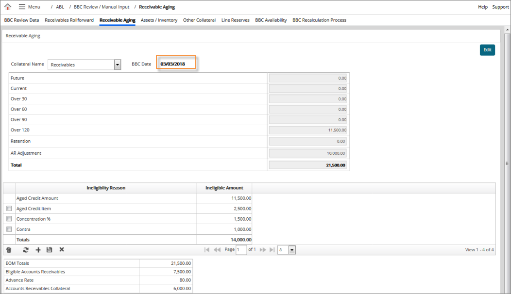 Navigation: ABL → BBC Review Manual Input → Receivable Aging