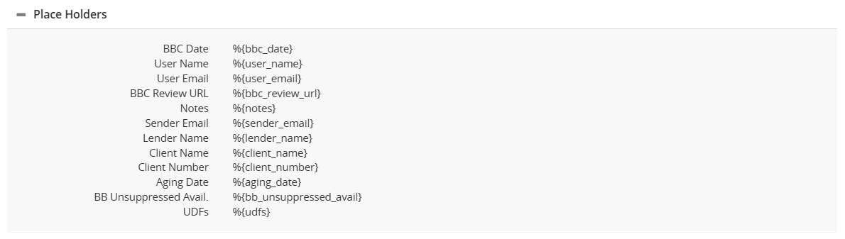 The template employs placeholders to fetch the data from the system once the email/text template triggers.