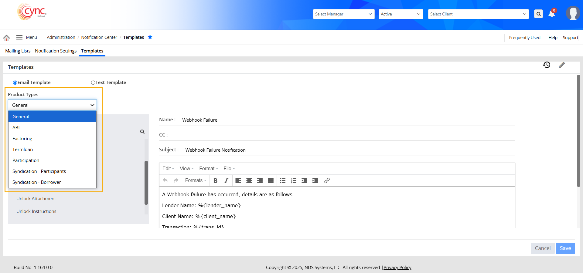 1. Select any one of the product types such as General, ABL, Factoring, and Term Loan, from the Product Types dropdown.