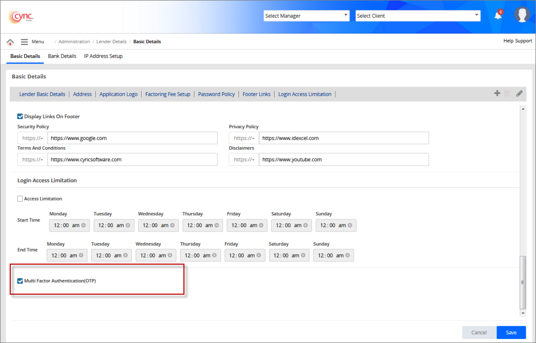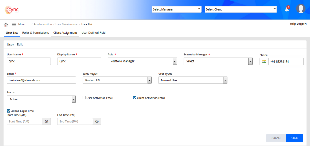 The Client Activation E-mail checkbox appears only for Portfolio manager and Collateral analyst roles assigned users. If the checkbox is selected, then a notification e-mail will be sent to the assigned Portfolio managers or collateral analyst, when the client is activated or deactivated under the Basic Client Detail page.