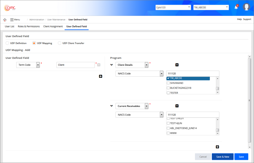 4. In the User Defined Field section, select the UDF value from the dropdown list.
