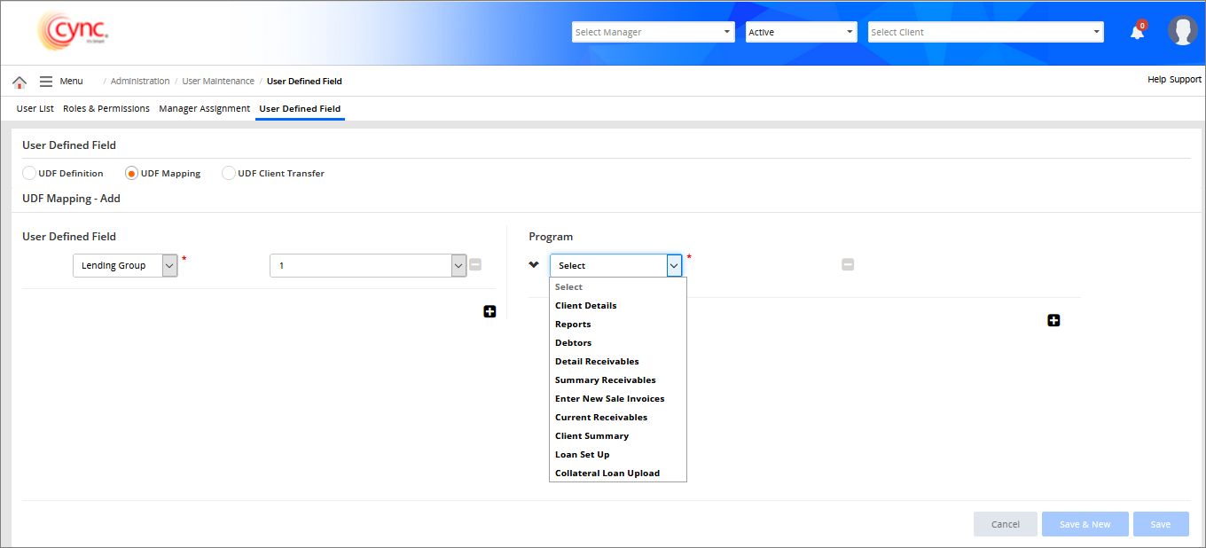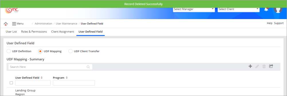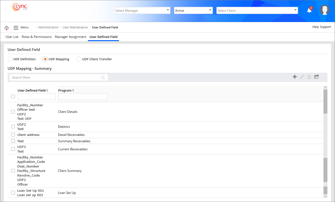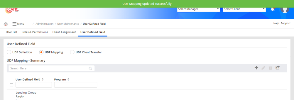 Users can create a new UDF mapping, and edit and delete an existing UDF. Users can also export the UDF summary with the UDFs and/or program/s.