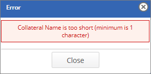 Specifies the name of collateral. The minimum character limit is 1. If the character limit is less than 1, an error message appears. Refer to the screenshot: |
