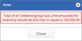 You cannot add same collateral name in more than one Group type. If user adds the same collateral name in more than one group type such as sublimit, then the system shows an error notification.